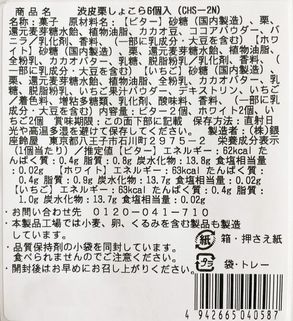 渋皮栗しょこら6個入(CHS-2NW)